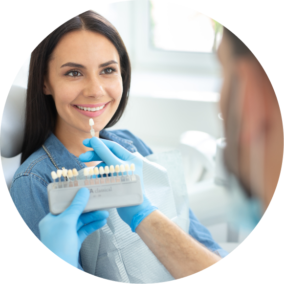 Teeth veneers are thin, custom-made shells placed over the front of your teeth to correct imperfections like discoloration, chips, and uneven spacing. We create veneers tailored to your unique smile using high-quality, biocompatible materials for a natural, seamless finish that enhances your appearance and confidence.